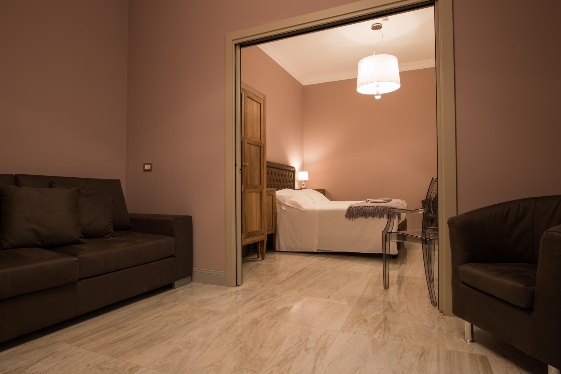 Divisa in due ambienti la camera dispone di letto matrimoniale, mobilio di fattura artigianale, confortevole bagno privato con box doccia, linea di cortesia "Body Purity" dell'esclusiva maison cosmetica Danhera, morbidi accappatoi e ciabattine, cassaforte, frigobar gratuito, comodo divano, TV con Sky Hotel, Wi-Fi, Tea and Coffee corner per godere di una pausa rilassante a ogni ora della giornata.